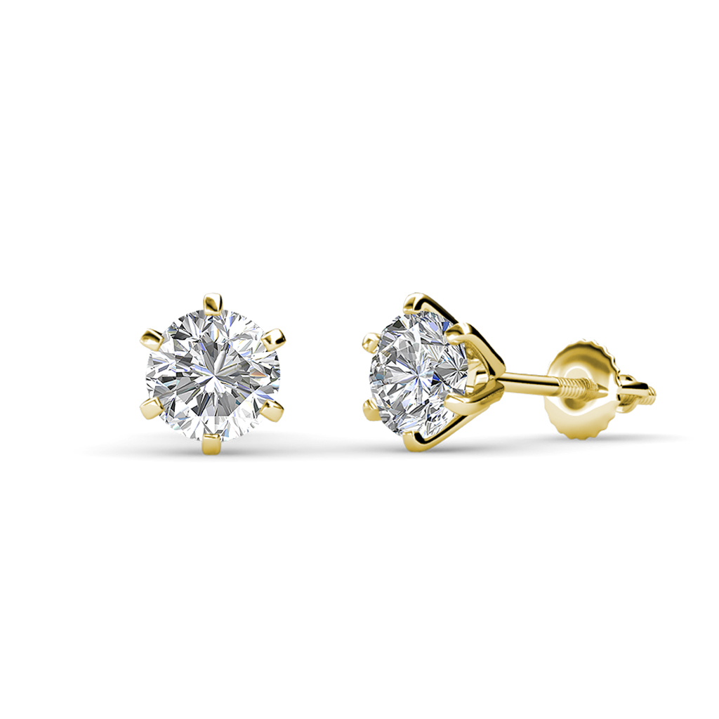 Set your choice of two matching Diamonds in these beautiful Six Prong 14K Yellow Gold Stud Earrings secured by Screw Back.