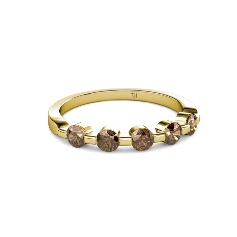 • 5 Round Smoky Quartz of 0.75 ctw/3.40 mm set using Bar Setting.