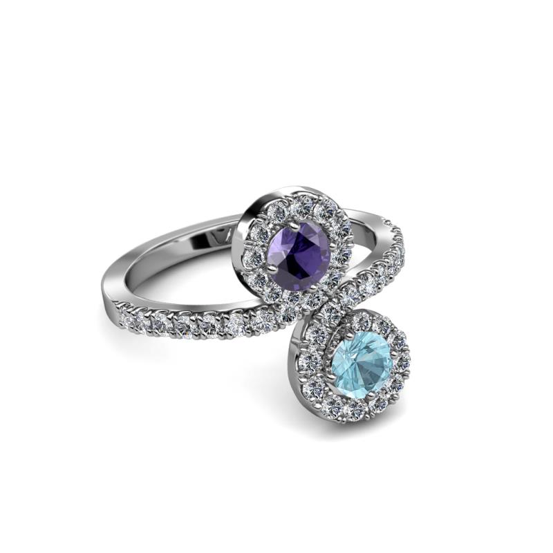 Aquamarine and Iolite 2 Stone with Side Diamonds Womens Bypass Engagement Ring 1.23 ctw 14K White Gold More Details ...