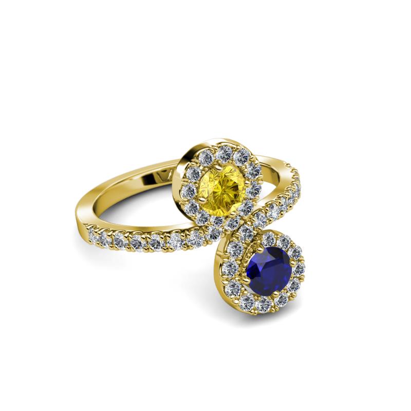 Blue and Yellow Sapphire 2 Stone with Side Diamonds Bypass Engagement Ring @TotalCarat Carat tw in @PrimaryMetal. More Details ...