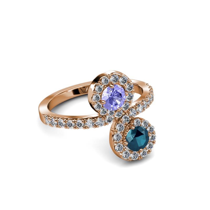 Blue Diamond and Tanzanite 2 Stone with Side Diamonds Womens Bypass Engagement Ring 1.19 ctw 14K Rose Gold More Details ...