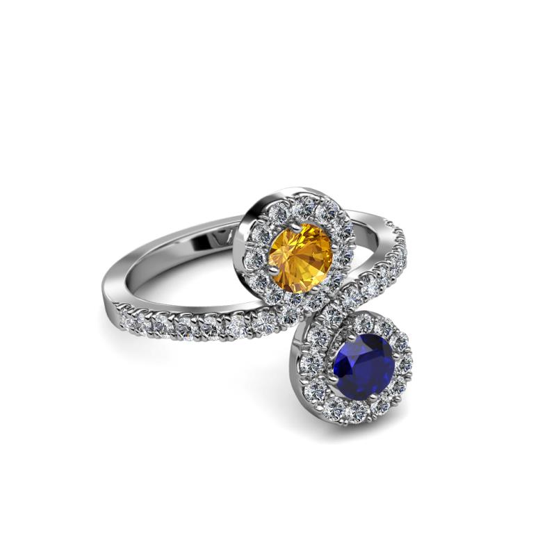 Blue Sapphire and Citrine 2 Stone with Side Diamonds Womens Bypass Engagement Ring 1.23 ctw 14K White Gold More Details ...