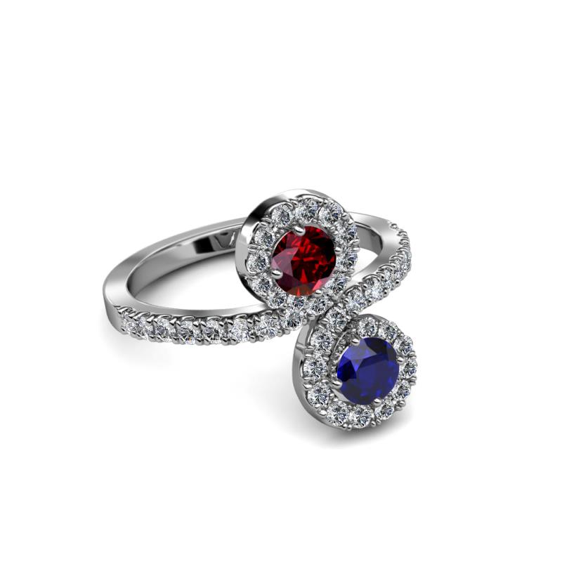 Blue Sapphire and Ruby 2 Stone with Side Diamonds Womens Bypass Engagement Ring 1.24 ctw 14K White Gold More Details ...