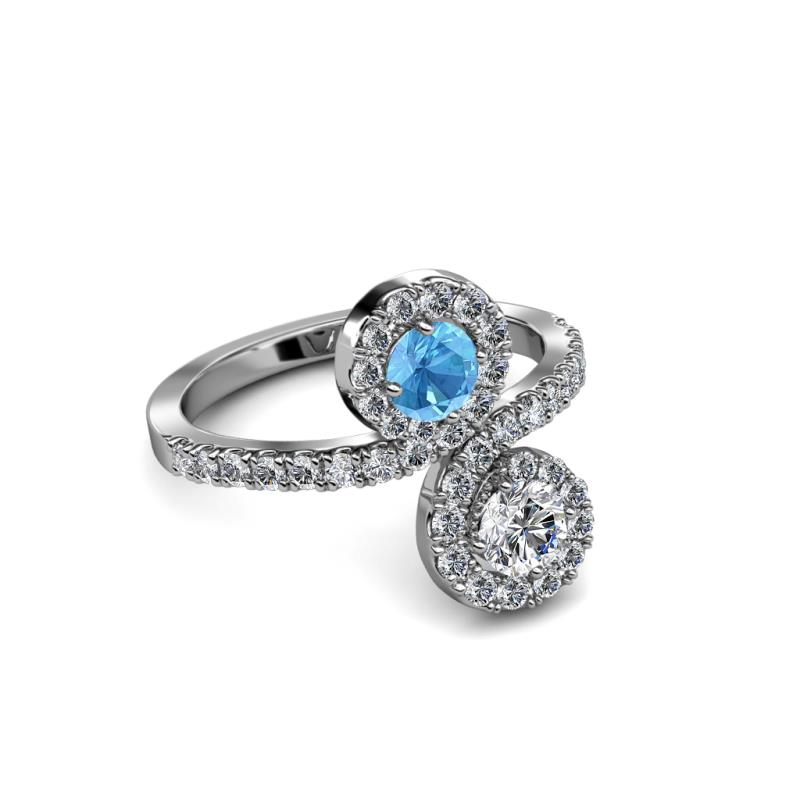 Diamond and Blue Topaz 2 Stone with Side Diamonds Womens Bypass Engagement Ring 1.23 ctw 14K White Gold More Details ...
