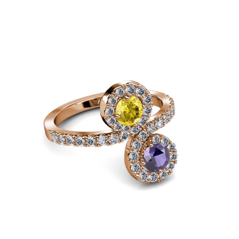 Iolite and Yellow Sapphire 2 Stone with Side Diamonds Womens Bypass Engagement Ring 1.23 ctw 14K Rose Gold More Details ...