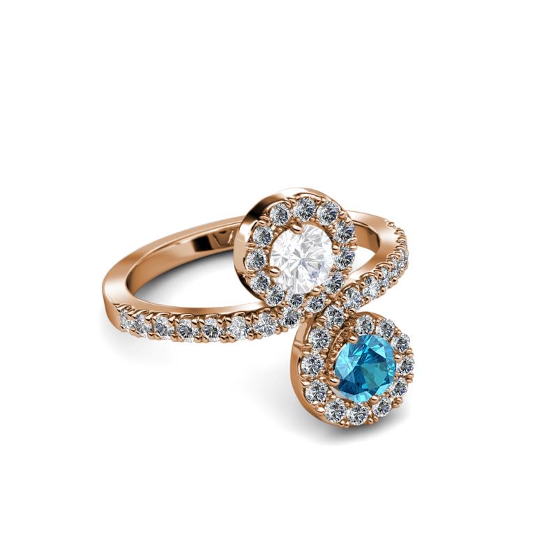 A divine symbol of togetherness, where one stone represents love and one friendship while each end of the ring swirls around the marvelous combination of London Blue Topaz & White Sapphire meeting above and below, rather than in the center.