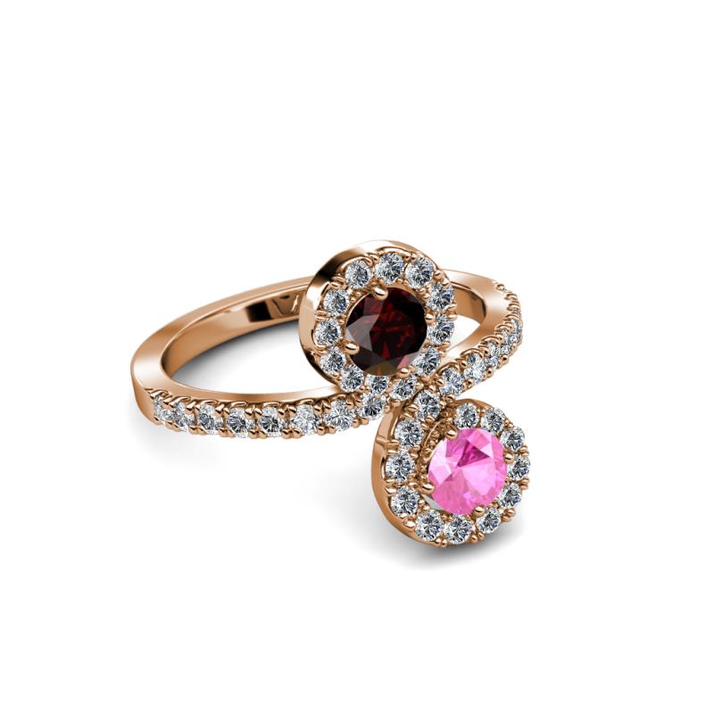 Pink Sapphire and Red Garnet 2 Stone with Side Diamonds Womens Bypass Engagement Ring 1.27 ctw 14K Rose Gold More Details ...