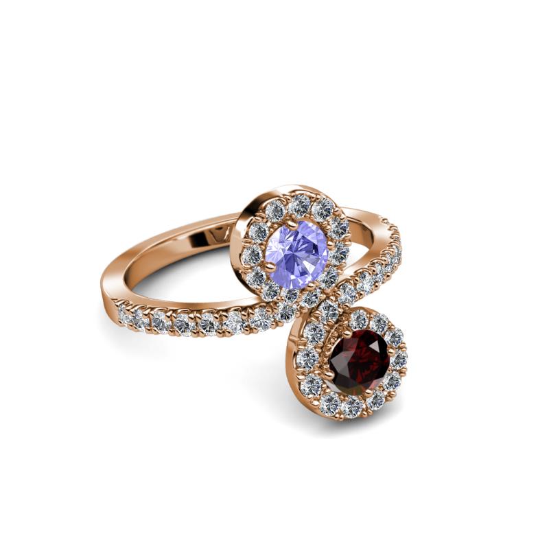 Red Garnet and Tanzanite 2 Stone with Side Diamonds Womens Bypass Engagement Ring 1.24 ctw 14K Rose Gold More Details ...
