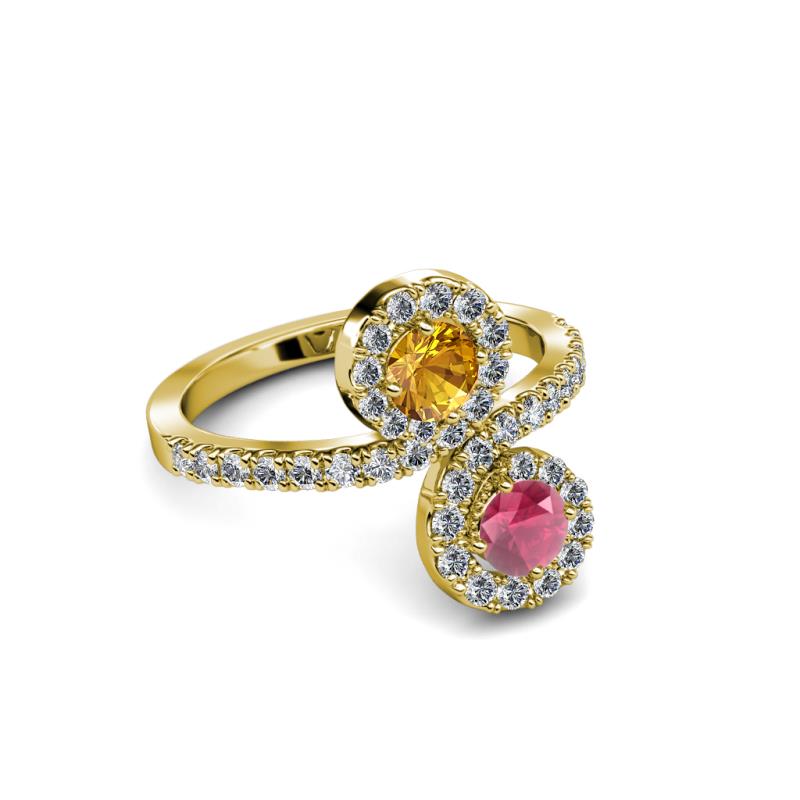 Rhodolite Garnet and Citrine 2 Stone with Side Diamonds Bypass Engagement Ring 1.26 Carat tw in 14K Yellow Gold. More Details ...