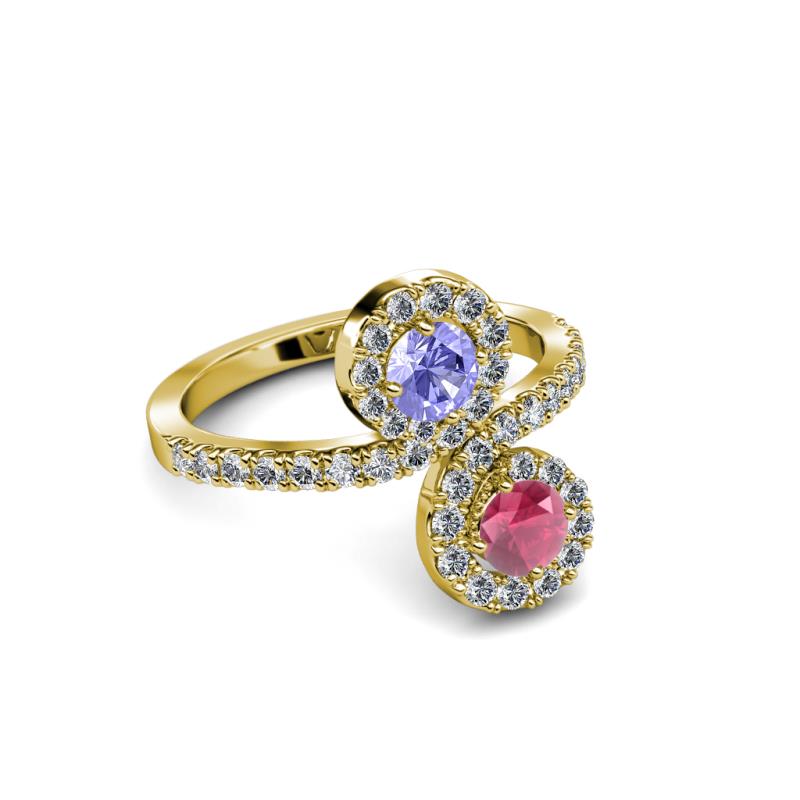 Rhodolite Garnet and Tanzanite 2 Stone with Side Diamonds Womens Bypass Engagement Ring 1.24 ctw 14K Yellow Gold More Details ...