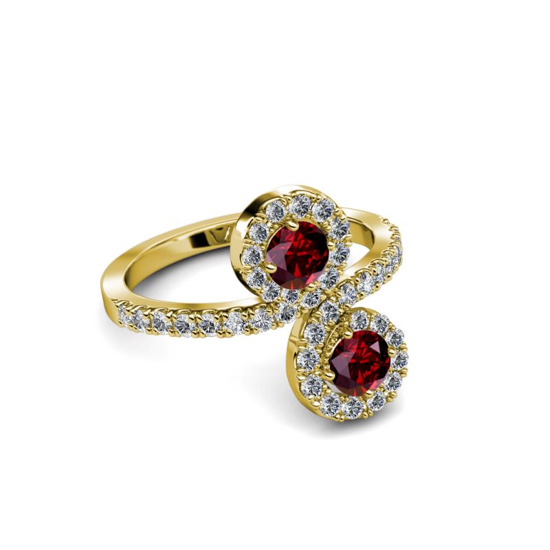Ruby 2 Stone with Side Diamonds Womens Bypass Engagement Ring 1.24 ctw 14K Yellow Gold More Details ...