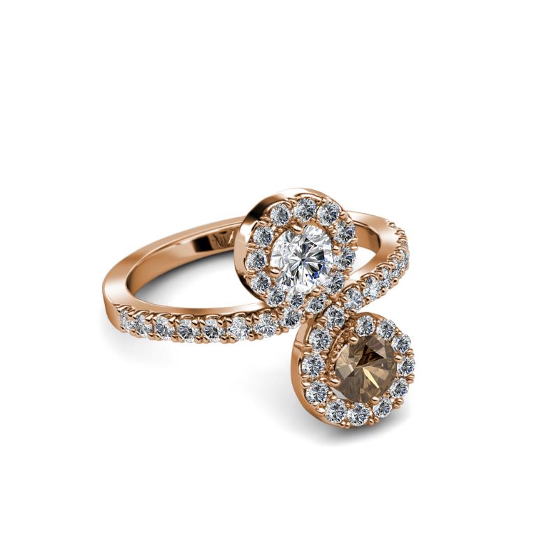 Smoky Quartz and Diamond 2 Stone with Side Diamonds Womens Bypass Engagement Ring 1.19 ctw 14K Rose Gold More Details ...