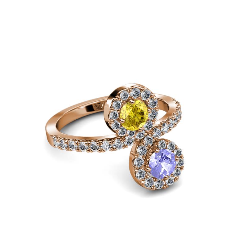 Tanzanite and Yellow Sapphire 2 Stone with Side Diamonds Womens Bypass Engagement Ring 1.20 ctw 14K Rose Gold More Details ...