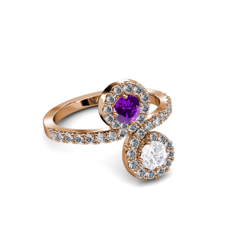 White Sapphire and Amethyst 2 Stone with Side Diamonds Womens Bypass Engagement Ring 1.23 ctw 14K Rose Gold More Details ...