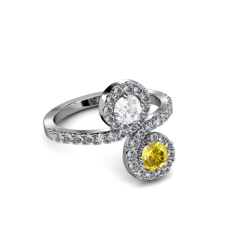 Yellow and White Sapphire 2 Stone with Side Diamonds Womens Bypass Engagement Ring 1.24 ctw 14K White Gold More Details ...