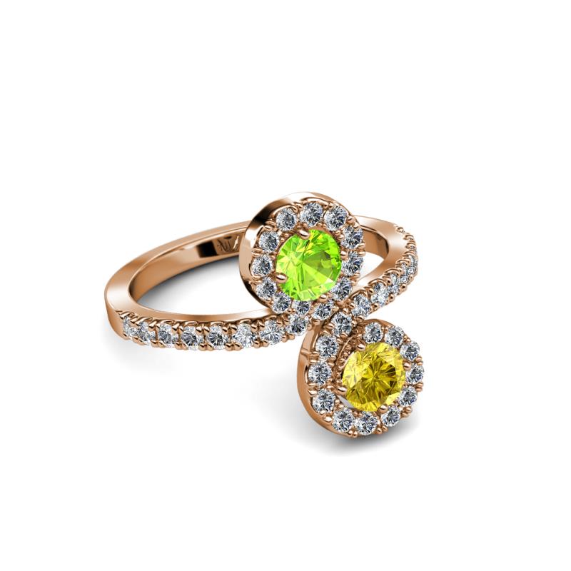 Yellow Sapphire and Peridot 2 Stone with Side Diamonds Womens Bypass Engagement Ring 1.27 ctw 14K Rose Gold More Details ...