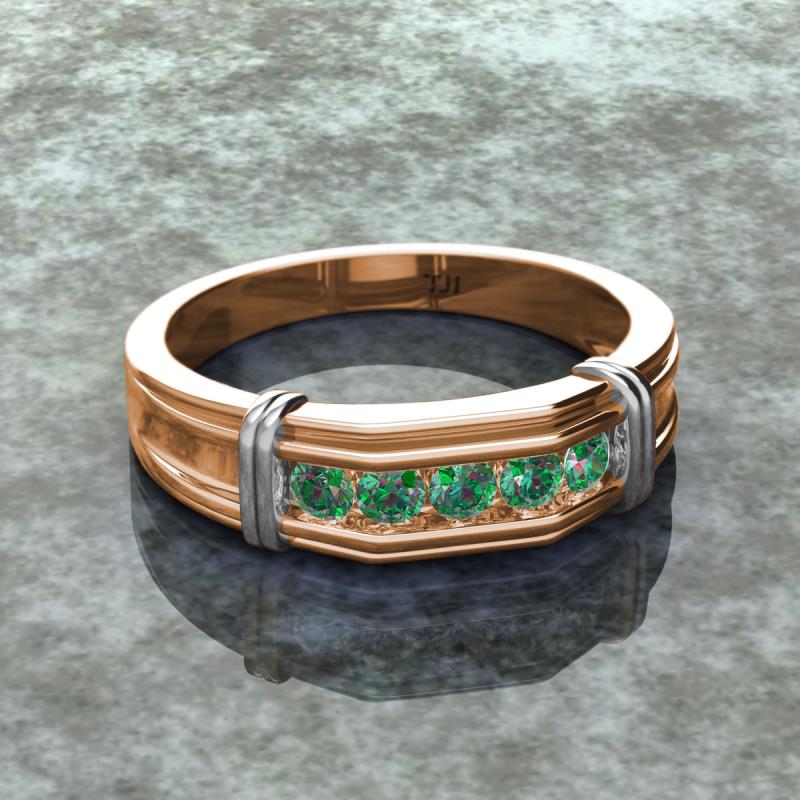 Enrich your look with the gleaming brilliance of Five Created Alexandrite showcased in this channel-set ring. Crafted in 18K Rose Gold, it ensures a comfortable daily wear experience while emanating refined luxury.