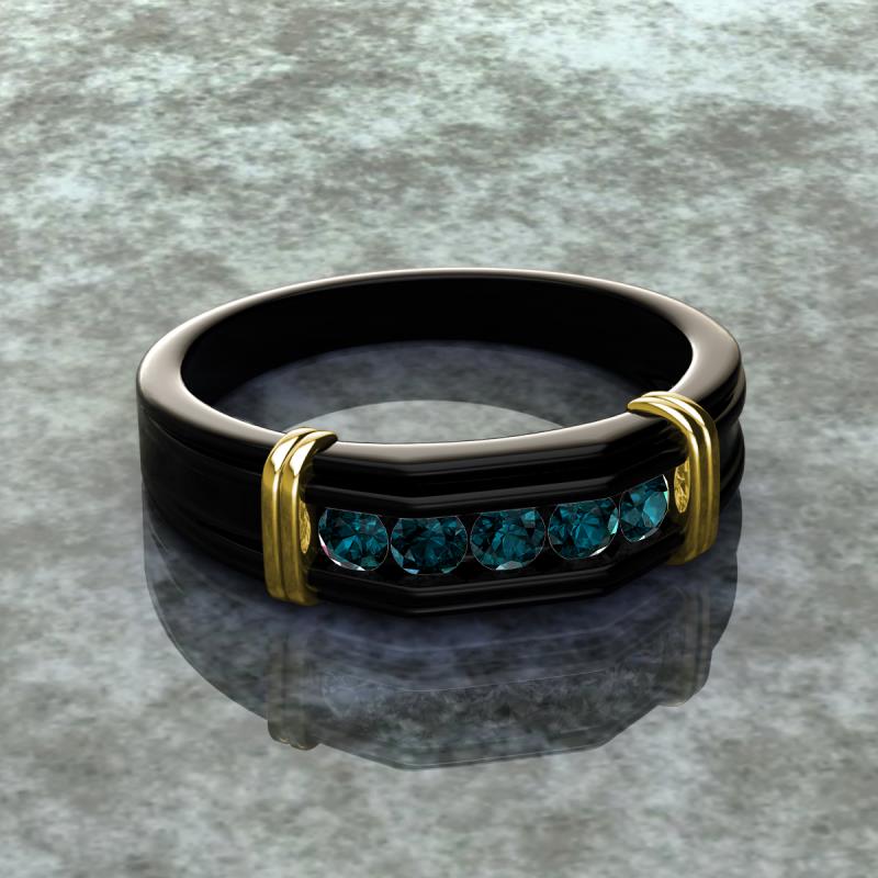 0.55 ctw Round 5 London Blue Topaz (3 mm) using Channel setting Men Wedding Band in 14K Black Gold More Details ...