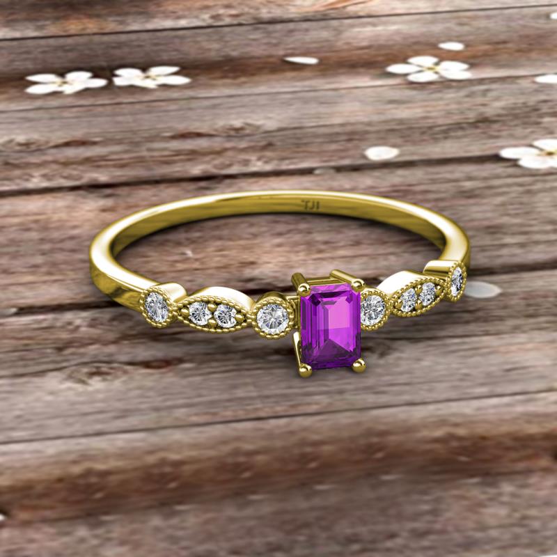 Emerald Cut (6x4 mm) Amethyst and Round Diamond 3/4 ctw Marquise and Dot Womens Engagement Ring 18K Yellow Gold More Details ...