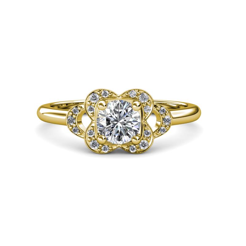 The Beauty of this Engagement Ring of 1.25 ctw will melt her Heart away with Center IGI Certified Round Lab Grown Diamond in 4 Prong Setting which shines high above the floral crown of Natural Diamonds with plain Bombay Shank making it a romantic treasure for the years to come.