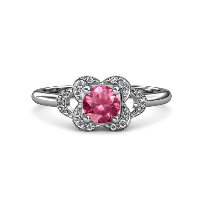 7/8 ctw Round Pink Tourmaline and Diamond Floral Womens Engagement Ring Platinum More Details ...