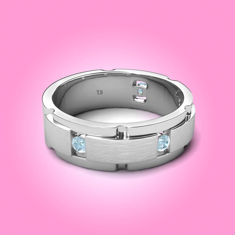 Wish To Look Stunning On Your Big Day, this Wedding Band of 0.16 ctw Round Aquamarine Satin Finished Center and Polished Edges with Grooved Lines, will do the magic for you.