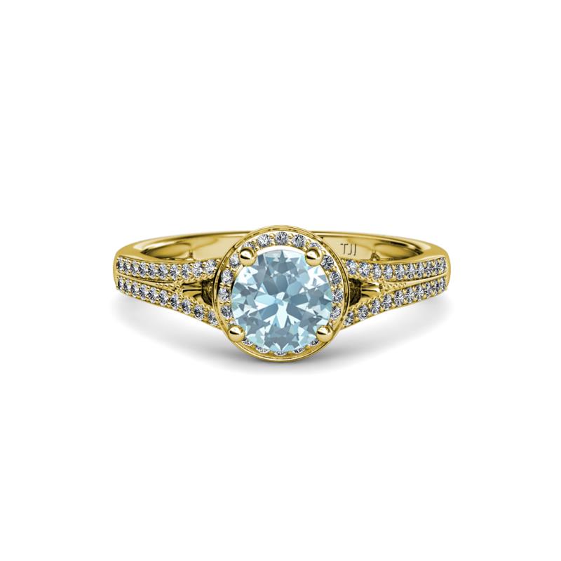 1 1/3 ctw Round Aquamarine and Diamond Womens Halo Engagement Ring 18K Yellow Gold More Details ...