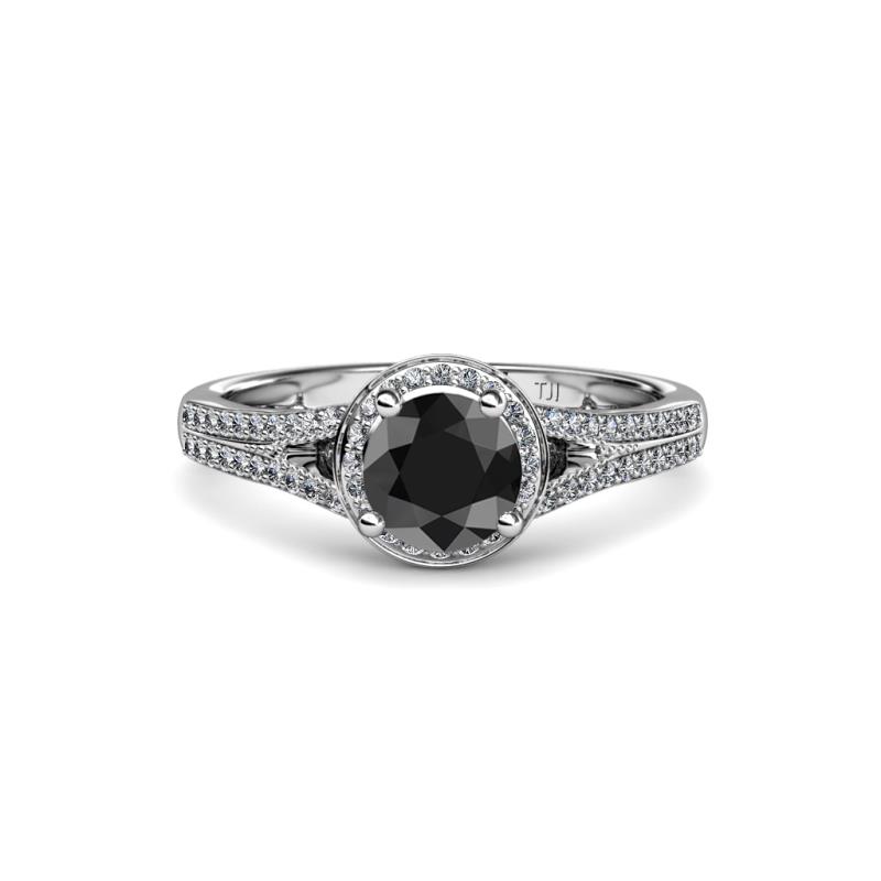 Make a beautiful beginning with this Engagement Ring where Halo of Diamonds hold the Center Black Diamond while the Ring's shank has Milgrain detailing in the open split continuing with row of White Diamonds and side undergallery work with single Bezel set white Diamond which alltogether makes it look vintage and royal.