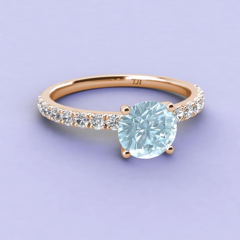 You can never go wrong with the enduring sophistication of a round-shaped stone. This refined Engagement Ring has center Round Aquamarine, set on a Diamond accented band.