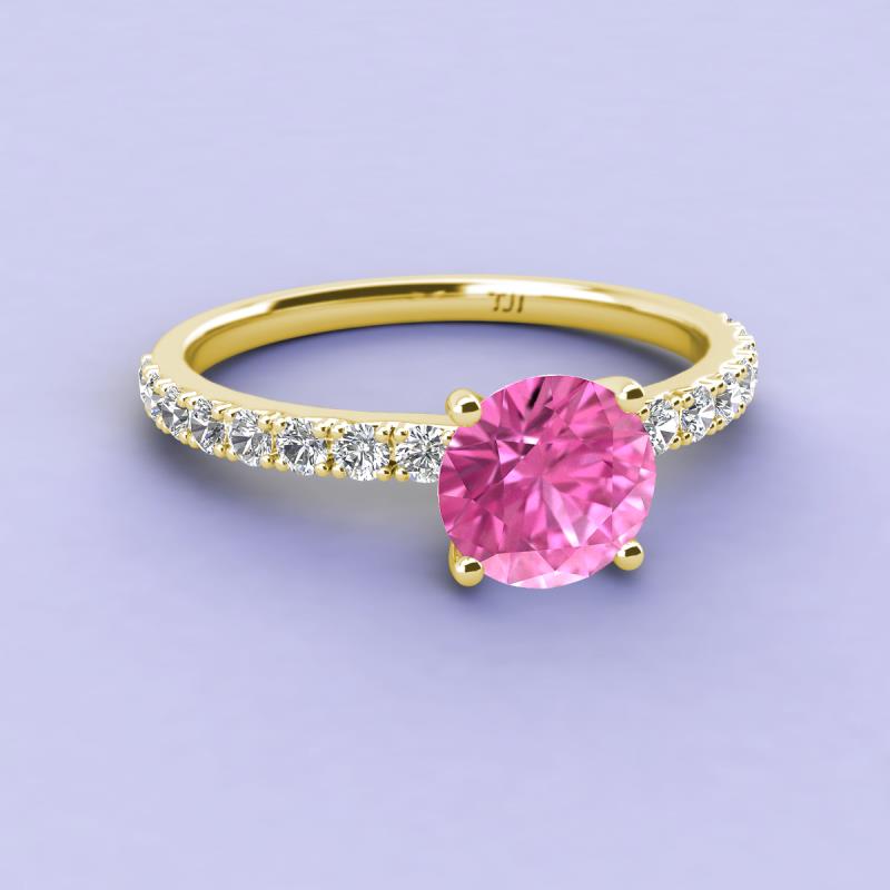 Round Lab Created Pink Sapphire and Diamond 1 1/4 ctw Womens Engagement Ring 18K Yellow Gold More Details ...