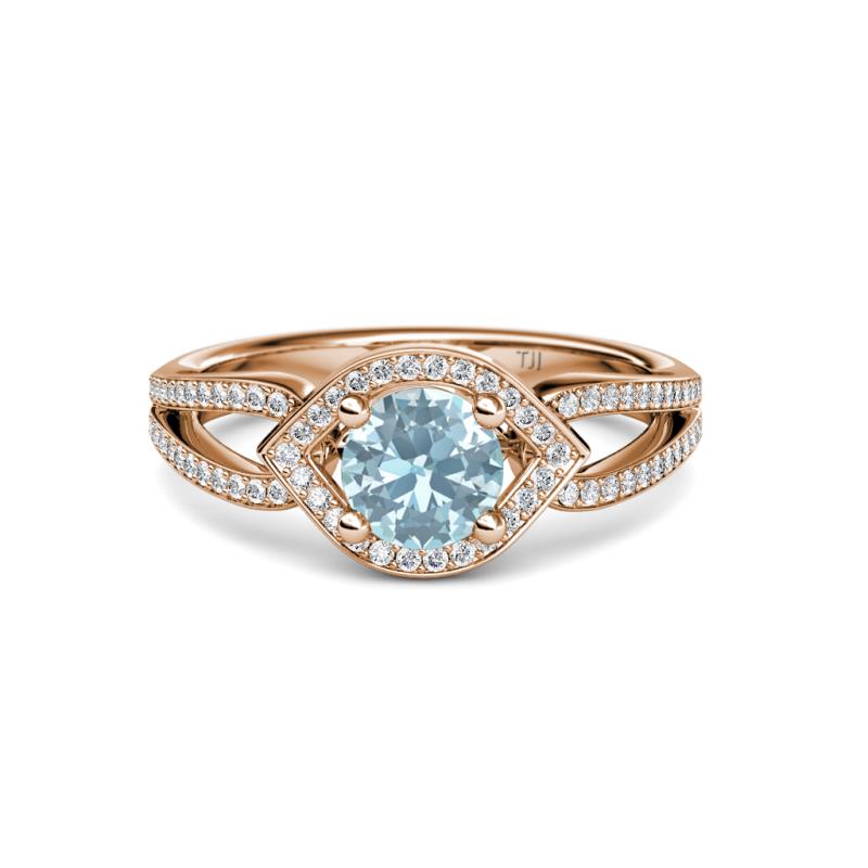 1 1/3 ctw Round Aquamarine and Diamond Eye Womens Halo Engagement Ring 14K Rose Gold More Details ...