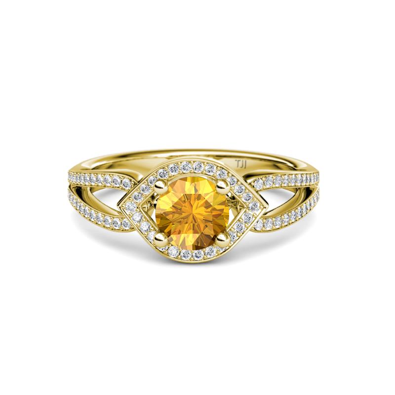 1 1/3 ctw Round Citrine and Diamond Eye Womens Halo Engagement Ring 14K Yellow Gold More Details ...