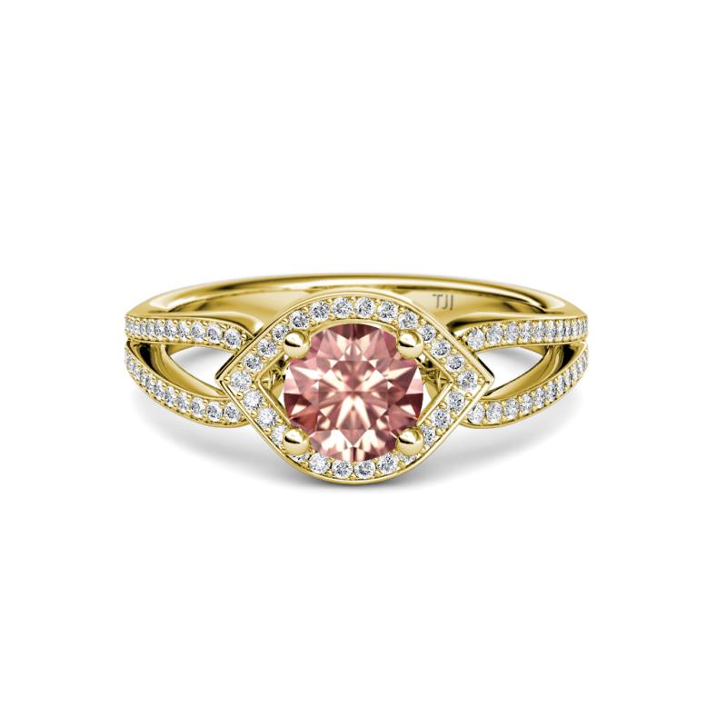 1 1/3 ctw Round Morganite and Diamond Eye Womens Halo Engagement Ring 14K Yellow Gold More Details ...