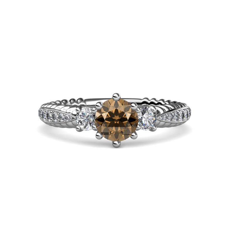 Smoky Quartz and Diamond Womens Three Stone Engagement Ring 1.45 ctw 14K White Gold More Details ...