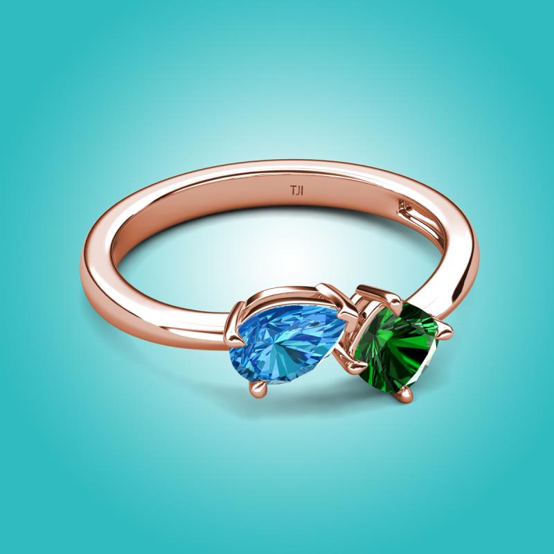 1.40 ctw Blue Topaz Pear Shape 7x5 mm & Lab Created Emerald Cushion Shape 5.00 mm with Prong setting Two Stone Duo Women Engagement Ring in 18K Rose Gold More Details ...