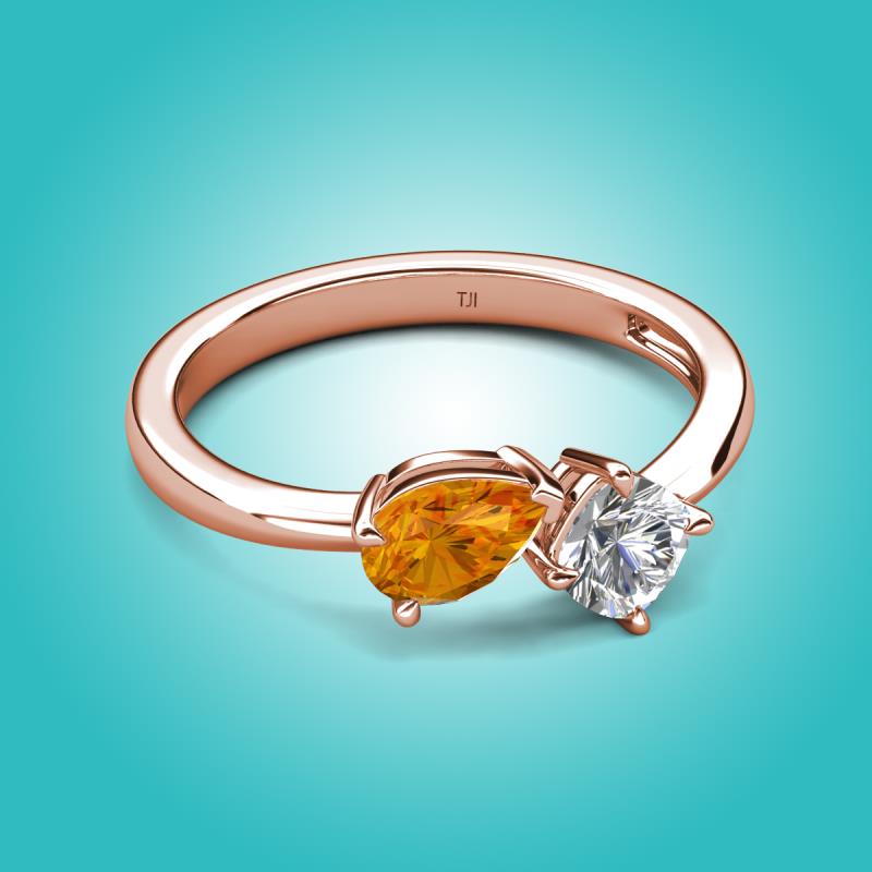 1.15 ctw Citrine Pear Shape 7x5 mm & Lab Grown Diamond Cushion Shape 5.00 mm with Prong setting Two Stone Duo Women Engagement Ring in 14K Rose Gold More Details ...
