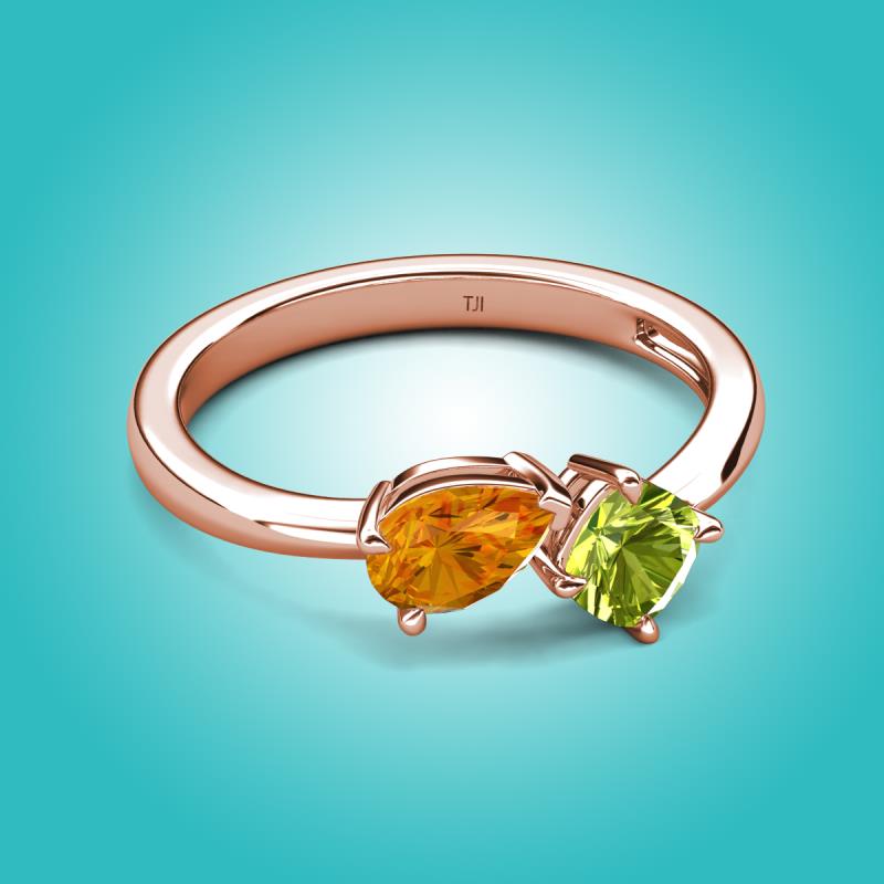 1.30 ctw Citrine Pear Shape 7x5 mm & Peridot Cushion Shape 5.00 mm with Prong setting Two Stone Duo Women Engagement Ring in 14K Rose Gold More Details ...