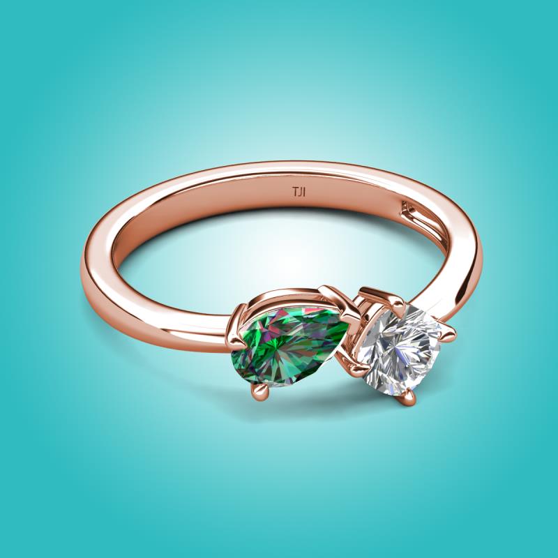 1.43 ctw Lab Created Alexandrite Pear Shape 7x5 mm & Moissanite Cushion Shape 5.00 mm with Prong setting Two Stone Duo Women Engagement Ring in 18K Rose Gold More Details ...