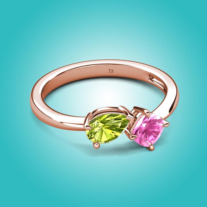 1.61 ctw Peridot Pear Shape 7x5 mm & Lab Created Pink Sapphire Cushion Shape 5.00 mm with Prong setting Two Stone Duo Women Engagement Ring in 14K Rose Gold More Details ...