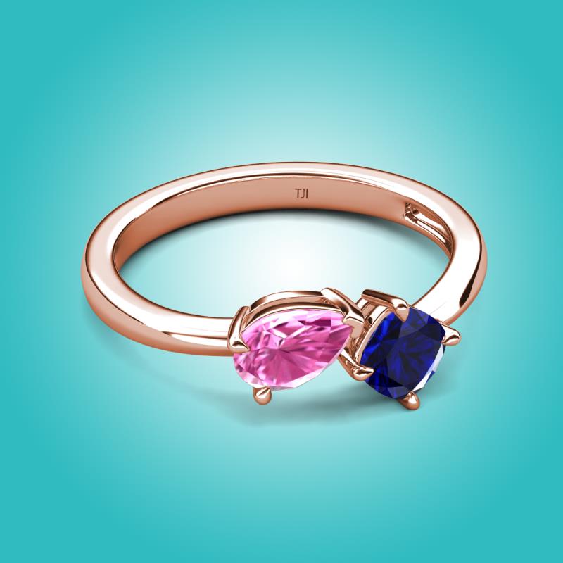1.71 ctw Pink Sapphire Pear Shape 7x5 mm & Lab Created Blue Sapphire Cushion Shape 5.00 mm with Prong setting Two Stone Duo Women Engagement Ring in 18K Rose Gold More Details ...