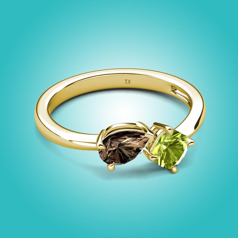 1.30 ctw Smoky Quartz Pear Shape 7x5 mm & Peridot Cushion Shape 5.00 mm with Prong setting Two Stone Duo Women Engagement Ring in 18K Yellow Gold More Details ...