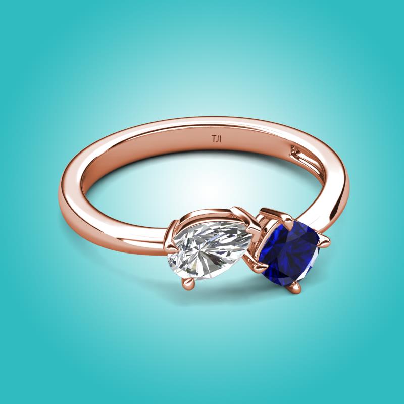 1.71 ctw White Sapphire Pear Shape 7x5 mm & Lab Created Blue Sapphire Cushion Shape 5.00 mm with Prong setting Two Stone Duo Women Engagement Ring in 14K Rose Gold More Details ...