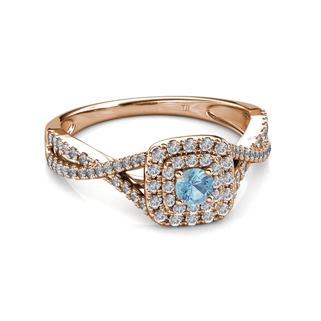 Aquamarine and Diamond Infinity Womens Double Halo Engagement Ring 0.57 ctw 18K Rose Gold More Details ...