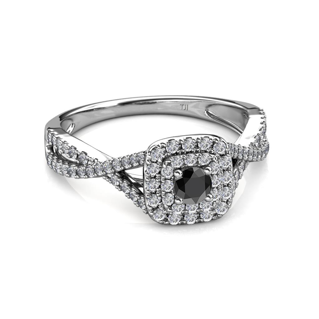 Black and White Diamond Infinity Womens Double Halo Engagement Ring 0.60 ctw 18K White Gold More Details ...