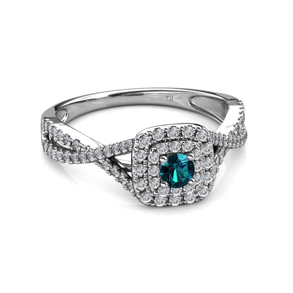 Designed to look sensational, this Engagement Ring consist of Center Blue Diamond wrapped by an exceptional Cushion Shape Double Halo with Diamond studded Infinity Shank, symbolizing your infinite love.