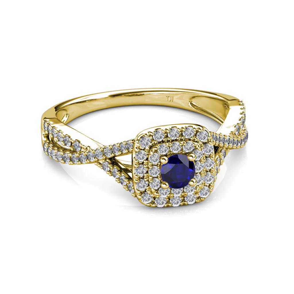 Blue Sapphire and Diamond Infinity Womens Double Halo Engagement Ring 0.60 ctw 14K Yellow Gold More Details ...