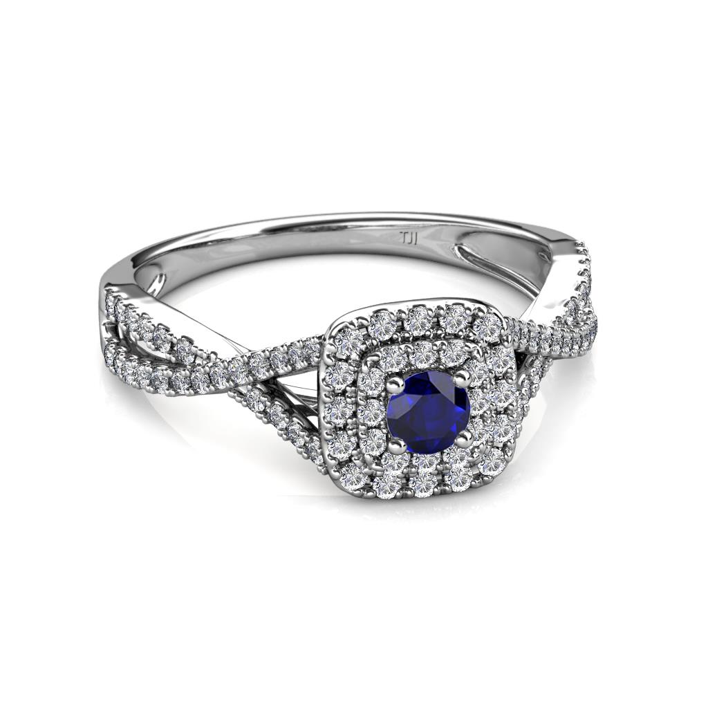 Blue Sapphire and Diamond Infinity Womens Double Halo Engagement Ring 0.60 ctw 18K White Gold More Details ...