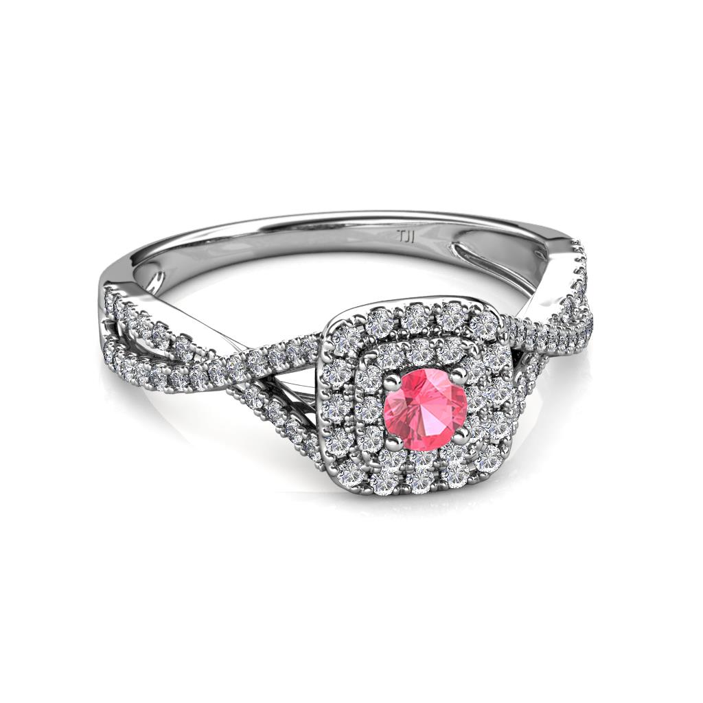 Pink Tourmaline and Diamond Infinity Womens Double Halo Engagement Ring 0.57 ctw 18K White Gold More Details ...