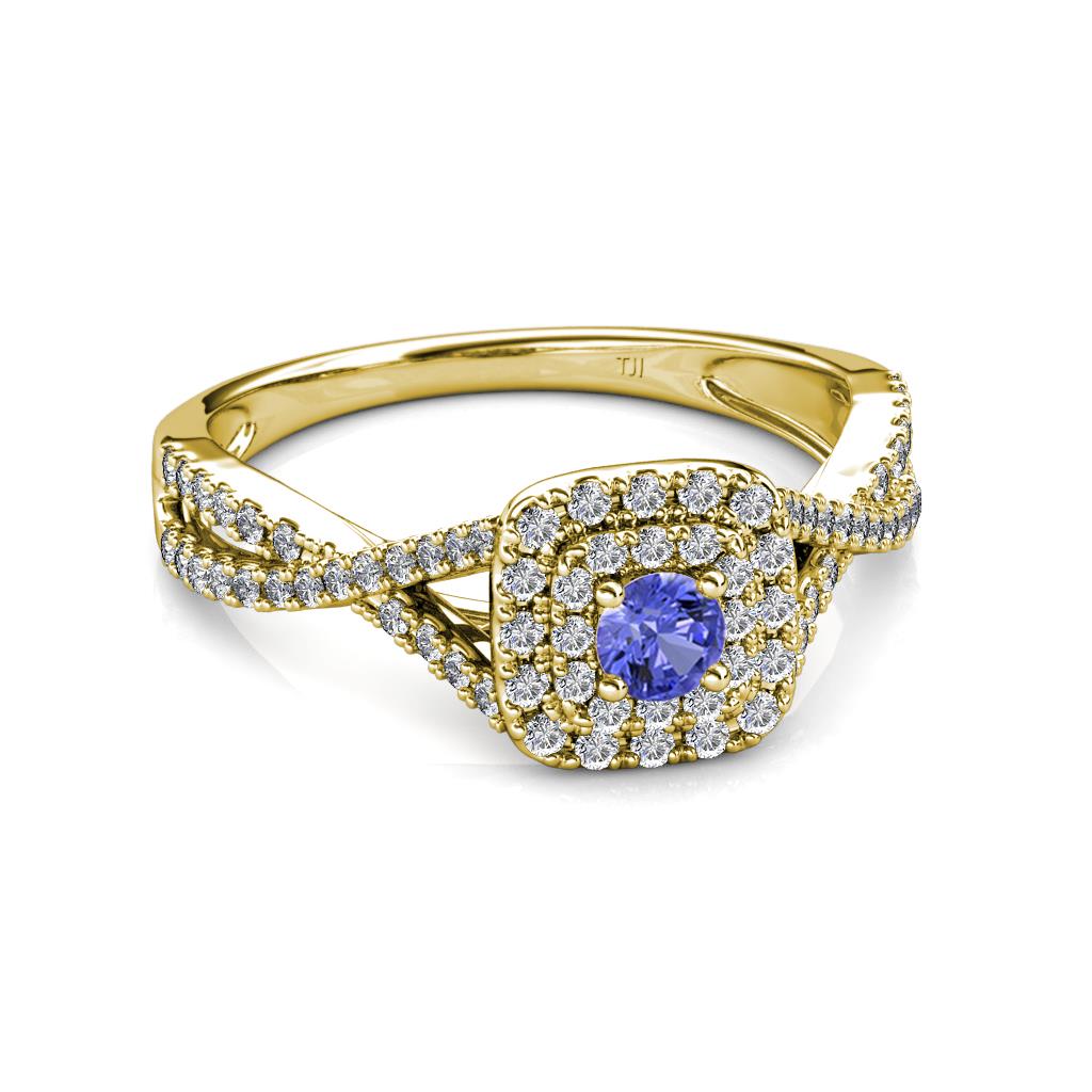 Tanzanite and Diamond Infinity Womens Double Halo Engagement Ring 0.59 ctw 14K Yellow Gold More Details ...
