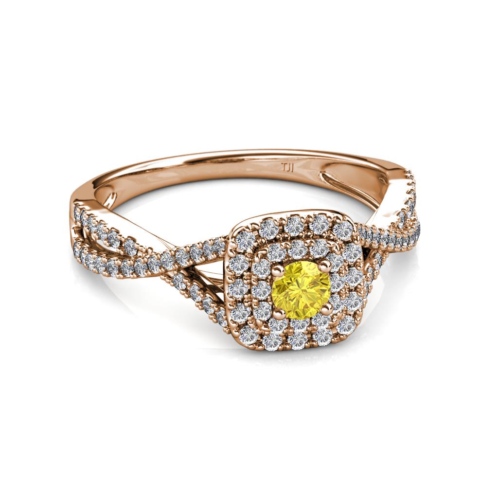 Yellow Sapphire and Diamond Infinity Womens Double Halo Engagement Ring 0.60 ctw 18K Rose Gold More Details ...